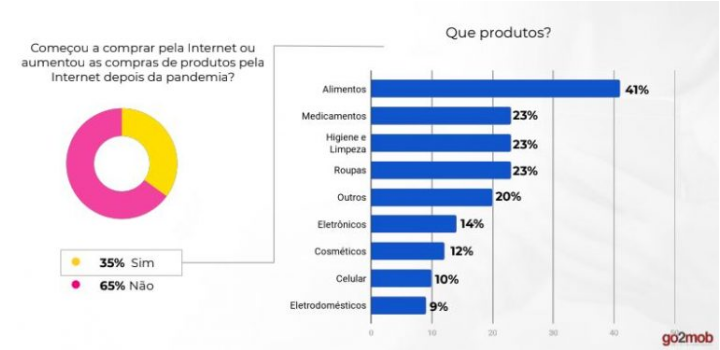 根据Go2Mob的一项调查,在重新开放商店和购物中心之后,有36%的巴西人已经去过实体店,而其余的64%的人依然没有进行实体店购物。在消费量最大的产品中,服装(40%),化妆品(20%),电子产品(9...