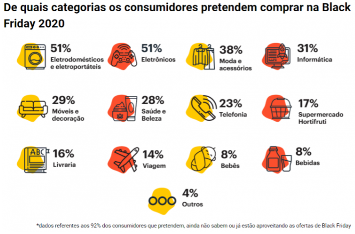 根据“ Boca de Urna”黑色星期五调查,超过一半的巴西人(63%)打算在黑色星期五购物,有18%不确定,还有11%已经在享受折扣。该研究还表明,在将要消费或仍存疑问的92%的人群中,最受追捧...